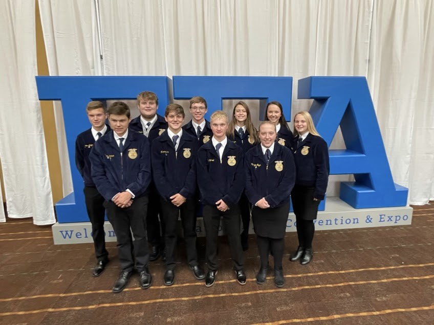 Reporter Torey Tentinger – Everyone was excited for an in-person National FFA Convention this year. The week was filled with exciting and fun adventures. The ten FFA members traveled on Tuesday October 26th and took a pit stop at Mrs. Sam Schroeder’s Family Farm to see and learn about aerial application with Bell 47 Helicopters and stayed the night in Iowa City. The next morning the FFA members traveled to Indianapolis, Indiana for the First General Session. They saw a Brett Young Concert, shopped, seen and talked to many vendors, and ate a lot of Culver’s Custard. There was a virtual reality tent put on by the Army, building and painting boxes for community pantries, climbing a beam supplied by the chainsaw company Stihle, and tie-dyed shirts. The FFA members had many learning opportunities and college reps to talk to. On the way home, the Group stopped at an educational farm called Fair Oaks where they did an obstacle course as well as watch live birth from a dairy cow. The trip came to a conclusion with the annual escape room and hotel stay in Peoria, Illinois. The National FFA Convention was a great experience and MMCRU FFA members would like to give a huge thank you to chaperionse Mattie Tucker and Jill Alesch.