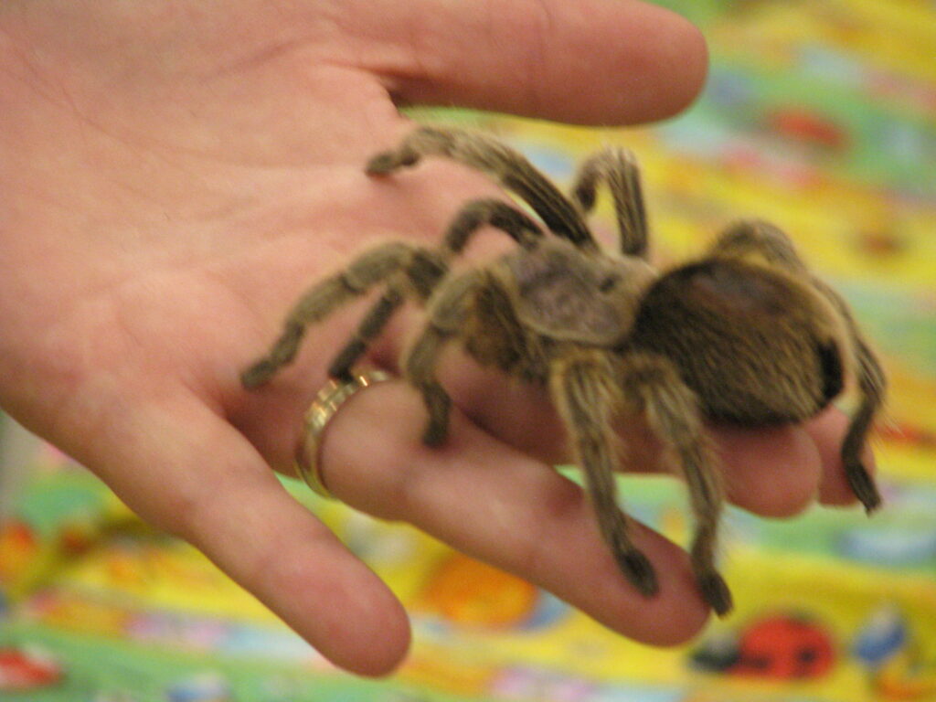 Moving on down the line of cage, we find a Tarantula. They comprise a group of large and often hairy spiders. There have been 1,010 species identified. Some of the more common species have become popular in the exotic pet trade. Many New World species kept as pets have found the hairs of the Tarantula can cause irritation to the skin and in extreme cases, cause damage to the eyes.