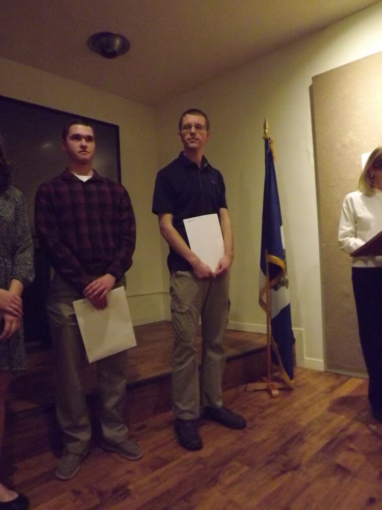 Elaine Leavitt and Renea Ogren presented the NSDAR Good Citizen Awards to Steven Colerick from Alta-Aurelia; Jake Breyfogle from Ridgeview; Halle Laurson from Sioux Central and Kaden Neddermeyer from MMCRU. (Jesse Brewer from River Valley was not present.) They each received a packet in addition to their award.