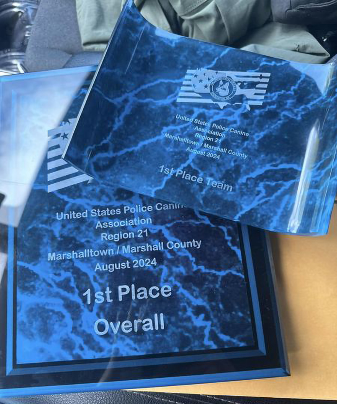 During trials Stephens and Vulcan not only again re-certified as a K9 team but judges also scored them among the best! This year’s attendance had 42 K9 teams from across Iowa and Minnesota competing in the trials with Stephens and Vulcan coming in 1st place over all! They also received honors as being members of the team that took home 1st place in the team competition! These accomplishments also earned Stephens and Vulcan a spot at Nationals this October in Baton Rouge, LA.