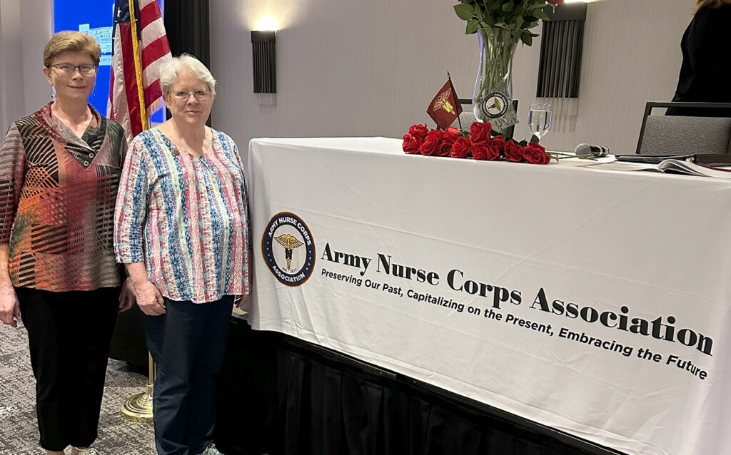 Local Army Nurse Corps Officers finally meet at the Army Nurse Corps Association Convention. COL (Ret.) Elizabeth Johnson and LTC (Ret.) Mary Alice Dunn met at the Army Nurse Corps Association Convention Conference 26 – 29 September 2024 in Cary, North Carolina. Elizabeth, the daughter of Verdell and Marian Johnson of Cleghorn, lives near Larrabee. Elizabeth is a 1978 graduate of Meriden-Cleghorn High School. She retired in 2012 after 30 years of Active-Duty service. Mary Alice Dunn, Andover, MN is the daughter of John (Jack) and Alice Dunn (both deceased) of Marcus, Iowa. Mary is a 1970 graduate of Marcus Community High School. She retired in 1995 after 23 years of Active-Duty service. Elizabeth started the conversation with “Are you Mary Dunn of Marcus, Iowa? I used to read about you in the in the Marcus News.” Mary then noticed that Elizabeth’s name tag identified her as being from Cleghorn and the conversation went from there. Both were on active duty at the same time, but never stationed at the same health care facilities, so paths did not cross.