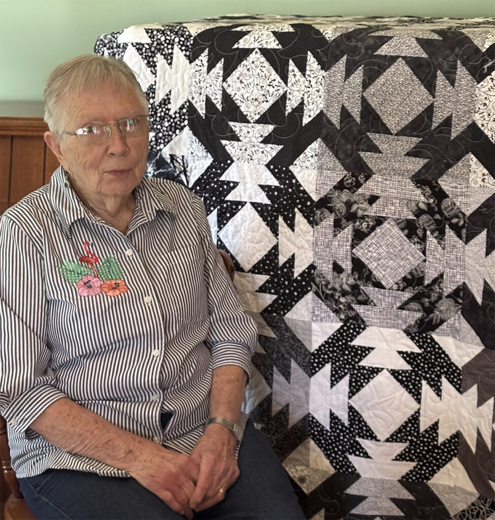 The Heartland Care Center Auxiliary will auction a stunning, queen-size quilt created by Bonnie Means at the upcoming Marcus Fair. This black-and-white quilt, which was awarded Best in Class at the 2024 Marcus fair, showcases exquisite craftsmanship and artistic flair.