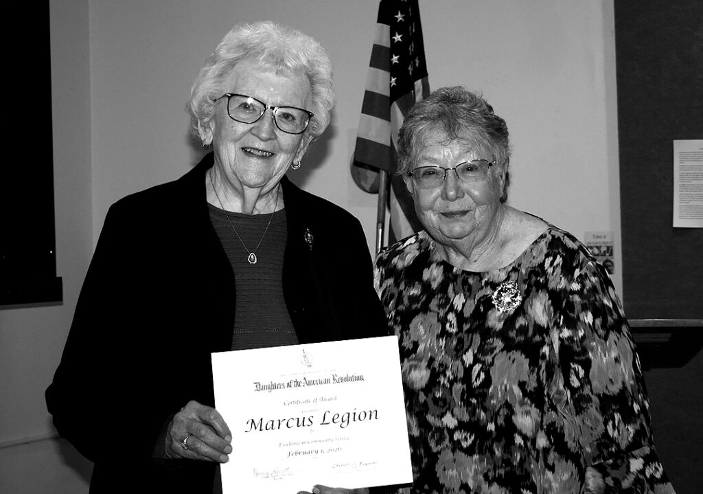 The Daughters of the American Revolution recognize individuals or organizations who have contributed to their community in an outstanding manner. This year our chapter chose to recognize the Marcus Legion.